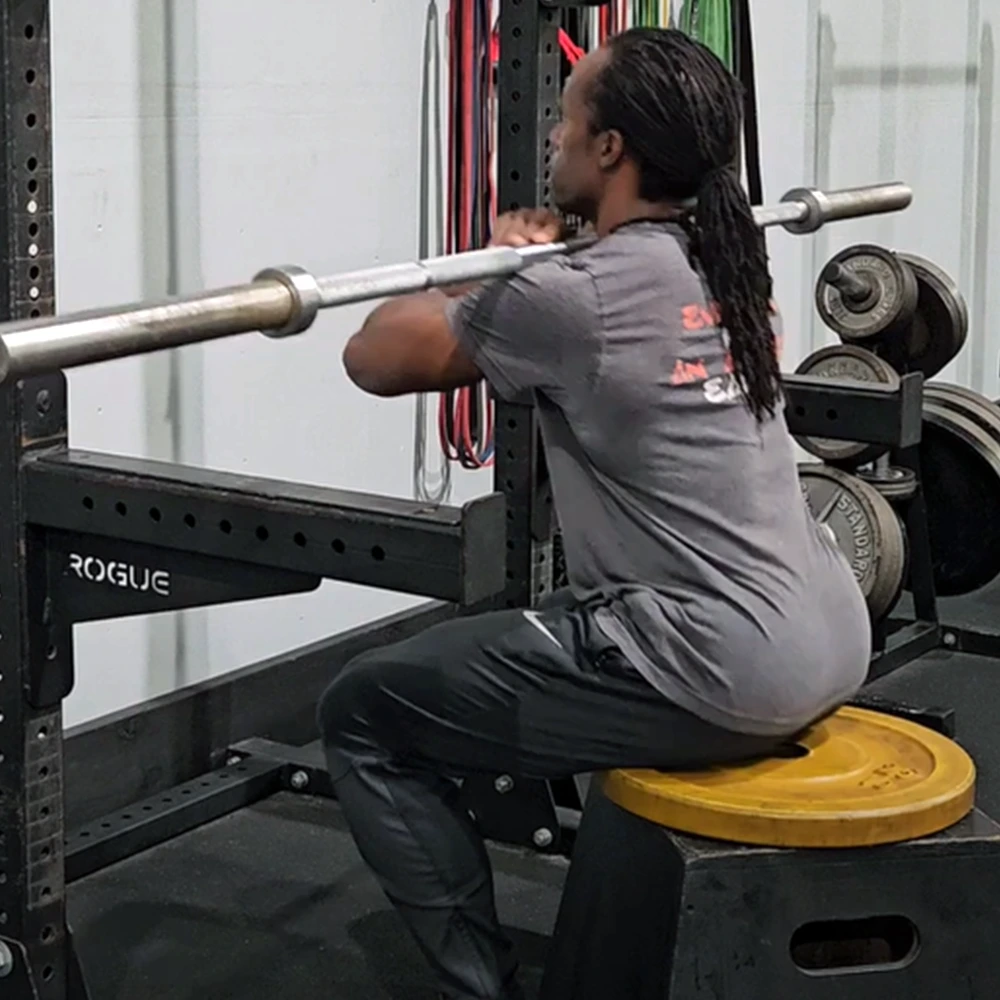 Equipment Needed: Barbell, Squat Rack w/ safety arms, Mini Band Loops, Exercise Bench, Machine Hamstring Curl Machine, Low Box